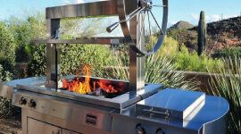 Enjoy the ultimate luxury experience with a motorised rotisserie spit that raises and lowers above a wood-fired grill. Not only will it cook flavoursome food to savour, but the design of the spoked wheel is sure to delight all guests.