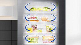 All-Around Cooling technology continually checks the internal temperature and blows out cold air when needed. Multiple air vents on every shelf help ensure the even distribution of cold air.