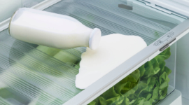 SpillSafe shelving can contain spilled liquid, stopping accidents from spreading throughout your fridge.
