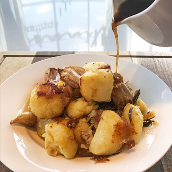 When starting to turn golden, transfer to a preheated oven 220 degrees and continue cooking until crispy.