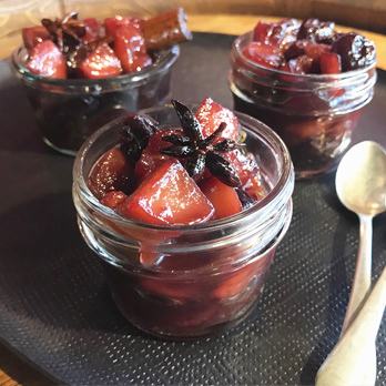 Add the apple, cherries, cinnamon, star anise and fresh thyme.