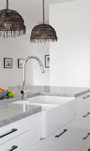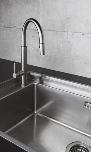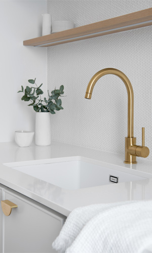 With so many different styles of sinks, it can be hard to pick a specific one. Think about your benchtop construction before you choose your sink and decide how to mount it. There are three ways to mount a sink, but not all sinks lend themselves to all three methods. Undermount sinks are installed underneath your kitchen bench to give your benchtop a clean, undisturbed look. Flush mount sinks are recessed into a specially cut groove for a seamless flow from benchtop to sink. Then there’s the more traditional top mount (or inset) installation, where the sink rim sits atop your bench. Many top mount sinks today have a micro edge, whereby the sink lip is noticeably thinner. Think about the following in terms of cost – undermount and flush are the most expensive ways to install while top mount will set you back the least. If you have a natural stone benchtop, it’s worth noting an undermount sink could potentially chip the stone over time, so it’s best to opt for flush or top mount.