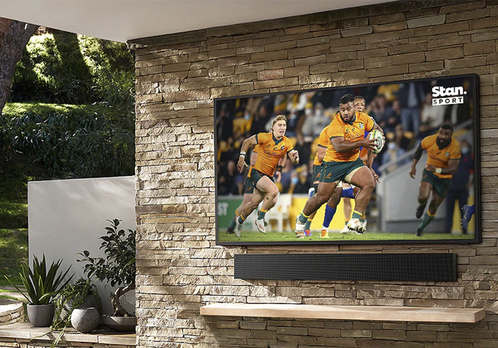 The Samsung Terrace Outdoor TV and Soundbar range has been specially designed to provide your entertainment needs in your alfresco space. Compared to conventional indoor TVs, the Samsung Terrace TV delivers a brighter display and anti-glare technology for clear images even outdoors.