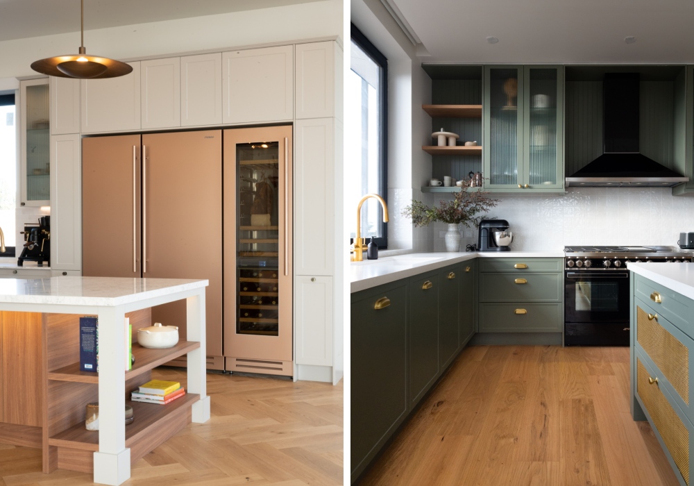 Coloured panels also have a place in current and on-trend kitchens. Deep greens are always a crowd pleaser though it’s wise to choose a colour that works across your home and with a view to longevity of appeal.