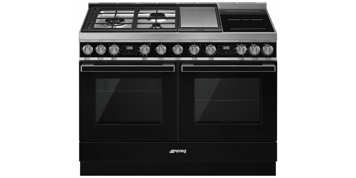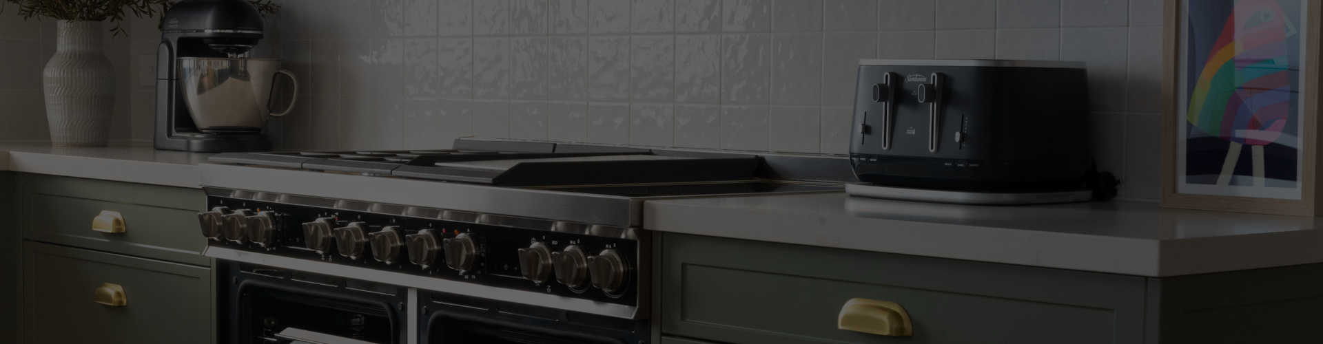 The SMEG Freestanding Cooker and matching Canopy Rangehood are from the Portofino range, which is characterised by its classic Italian style. They’ve opted for a black finish for a more modern look, while the squared elements in the design break away from the traditional rounded edges that is typical of the farmhouse style.