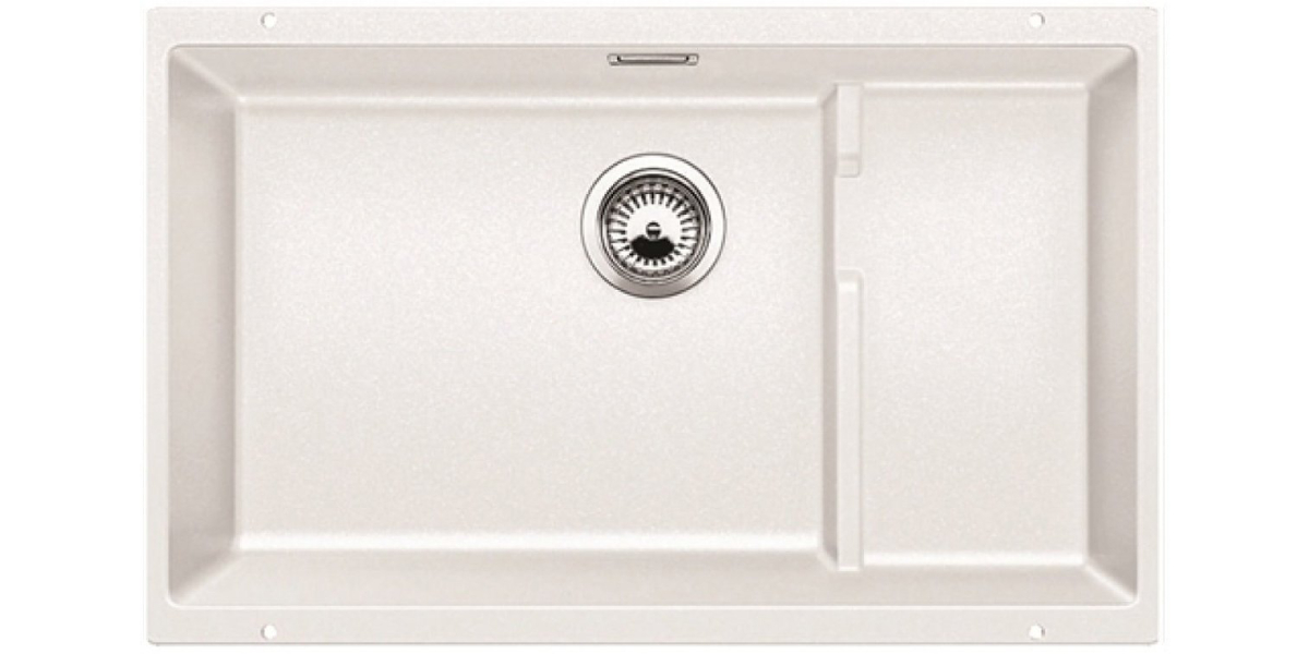 The Blanco Subline Sink in a white finish is a nod to the farmhouse sink but they’ve opted for an undermount to maintain a continuous line along the countertop.