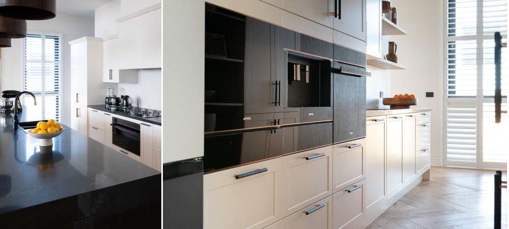 The beautiful black finish with copper detailing not only brings the look together, but having various appliances such as ovens, warming drawer, coffee machine, and wine cabinet from the same range enables you to streamline the way you cook and entertain.