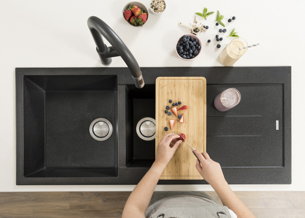 We're profiling Oliveri's beautiful Santorini granite sinks and Vilo tap products, which provide an elegant, functional and hygienic food preparation area.