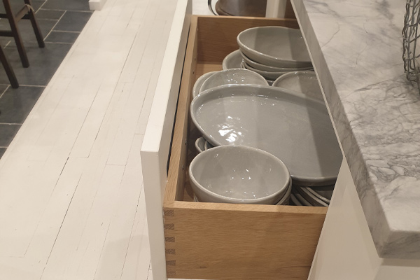 Kitchens are high wear and tear areas, ensuring you use full timber interiors with dove joins and good quality fittings and runners, which will not break down over time.