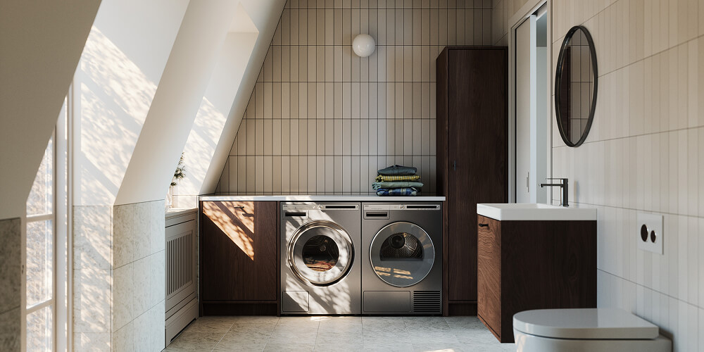 Unlike vented dryers that need exterior ducting, heat pump dryers are self-contained and can be placed wherever suits your space best, whether in an apartment laundry, a cupboard or even within a combined mudroom and butler’s pantry space. This flexibility lets you design a laundry area that works beautifully with your lifestyle.