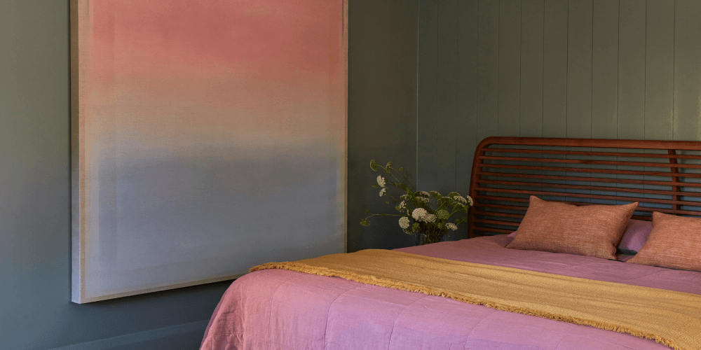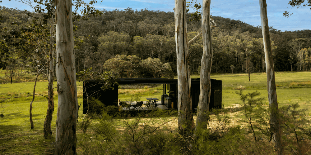 Owners Michael and Shirani Clark wanted a unique, transportable luxury cabin for their wilderness hotel business. The result is Hutch, a small room integrated into the valley landscape. Madeleine Blanchfield and project architect Kevin Ewart worked with Dulux to match paint colours from nature. Hutch combines quiet luxury with nature-infused interiors, blurring the line between indoor and outdoor.