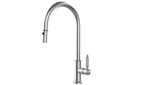 Designed for both practicality and style, the Turner Hastings Novanta Pull-Out Mixer brings effortless control to your kitchen. Its pull-out spray function enhances flexibility, making everyday tasks like rinsing produce, filling pots, and cleaning up more efficient and intuitive. The refined fluted handle design adds a touch of sophistication, elevating the look of your kitchen with subtle detailing.