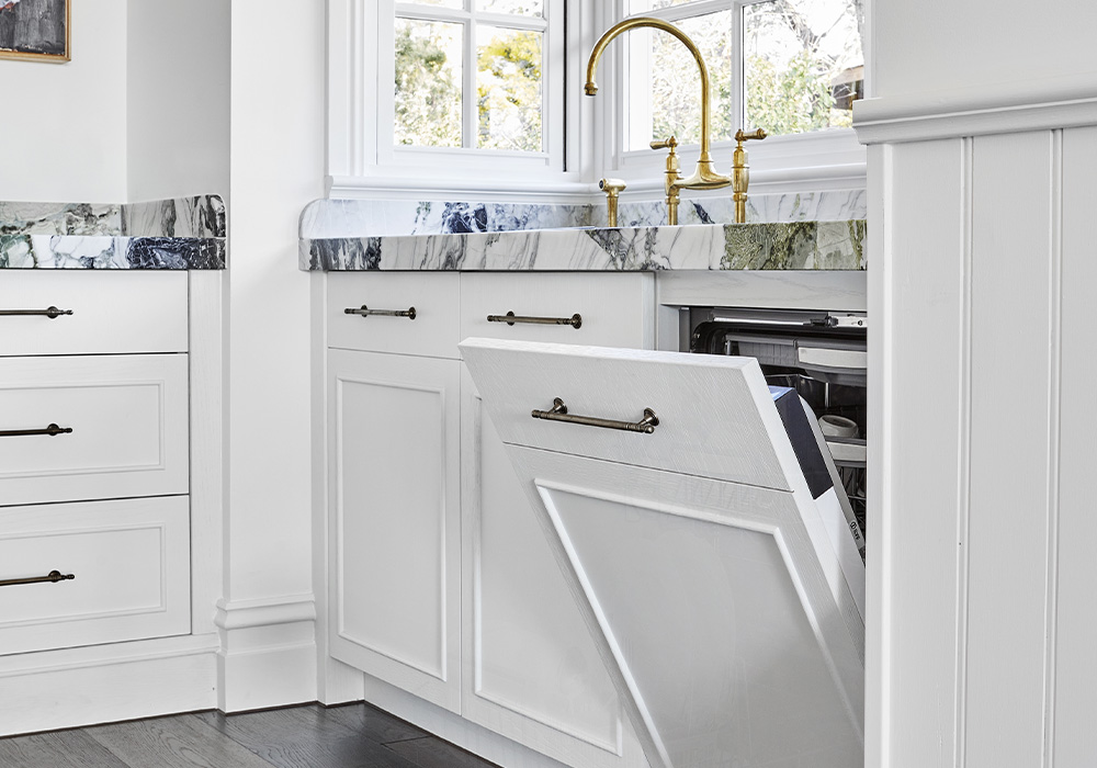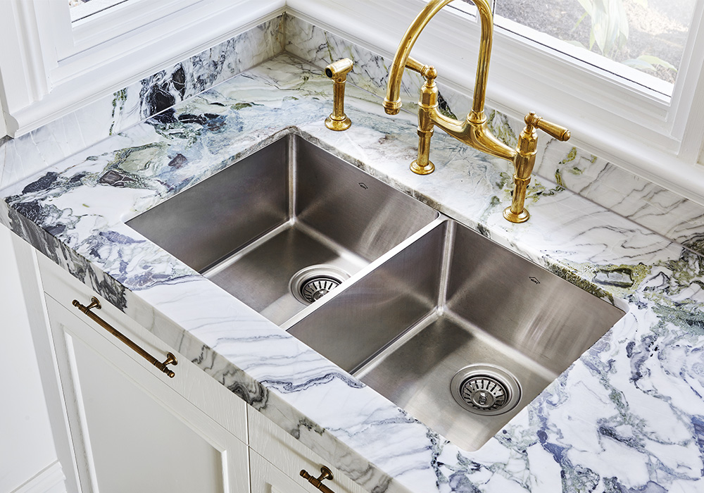 Following the theme of a singular look, Fhiaba refrigeration seemed like a perfect fit. Handcrafted in Italy, Fhiaba refrigerators are the pinnacle of luxury. They can be integrated into the cabinetry or feature a stainless-steel finish. (You can even get them in champagne, gold or rose gold.) It added a masculine flavour, which was perfect for the look we wanted to create.Customisation was another key element of this project, so we decided on a custom Qasair rangehood. They have the most efficient extraction and operate quietly. The stainless-steel grilles are easy to clean in the dishwasher, too. And they’re a lifelong investment.We selected an integrated ILVE dishwasher, which blends seamlessly into the joinery.We also opted for the Abey sink for the kitchen. Abey is a pioneer in leading design for sinks and taps, so it was an ideal choice for this project.
