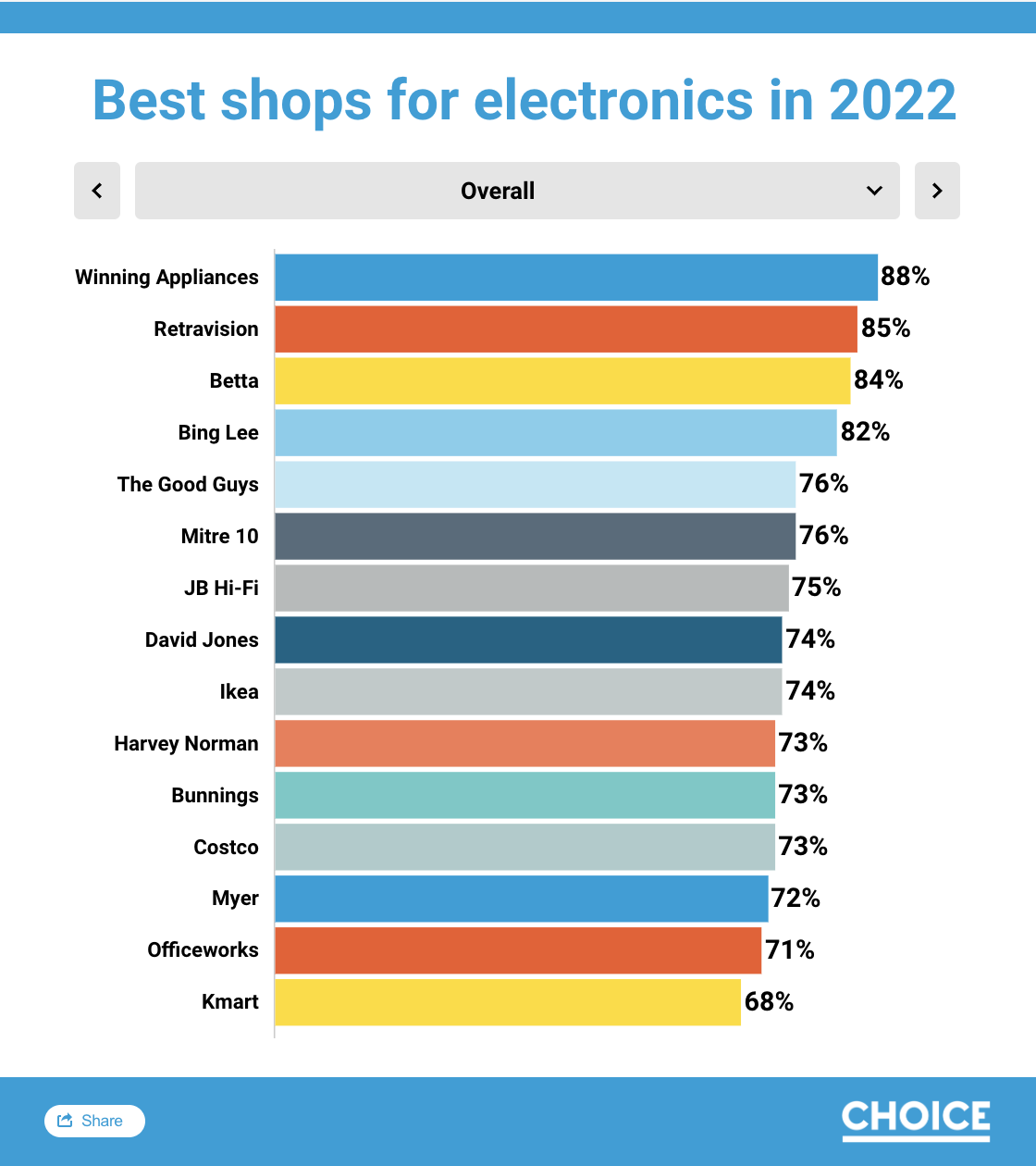 Winning Appliances has been awarded by CHOICE for best in-store experience with praise for after-sales service, range of products and brands available, and outstanding delivery service. Significantly, Winning Appliances has been commended on the exceptional customer service with customers advocating knowledgeable and helpful sales people.