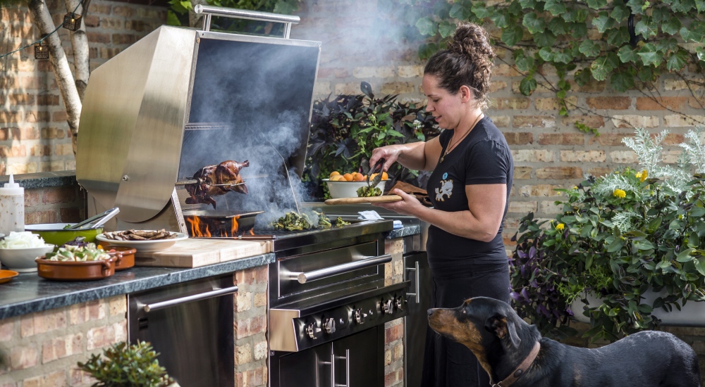 Cooking on a Kalamazoo grill fires up the senses: the sizzle of the meat, the spectacular sight of dancing flames, the aroma of fragrant wood smoke in the air, and the warmth of the sun as you tuck in to an alfresco lunch.