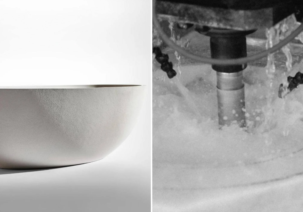 Driven by the need to reduce the waste of their mosaic tile business, Claybrook’s bathware business, and particularly their MarbleForm material, was born. MarbleForm products are manufactured in a low impact, emission-free production process and utilise the leftover marble from Claybrook’s tiles.