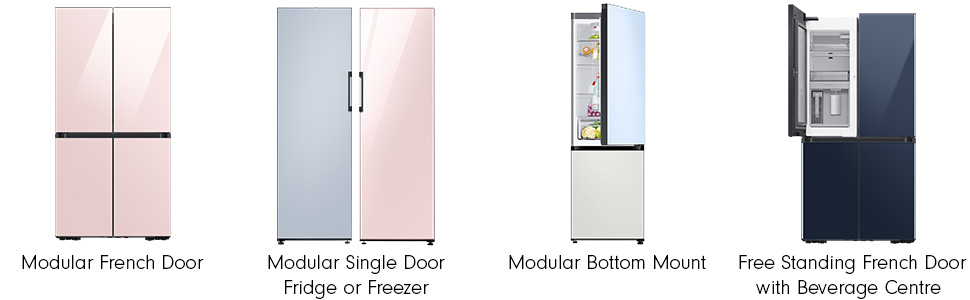 Can I mix and match modular with Free Standing fridges?Samsung's modular fridges are designed to be compatible only with other modular fridges in the range.There are no limitations on the number of modular fridges you wish to combine. The Free Standing Bespoke French Door fridge, however, cannot be paired with a Modular Bespoke Refrigerator.