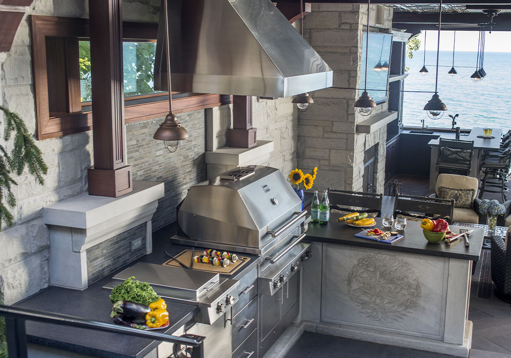 Pictured: A Kalamazoo alfresco area in 316 marine-grade stainless steel