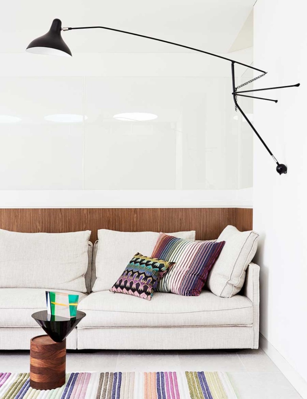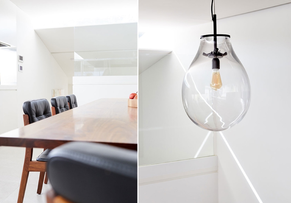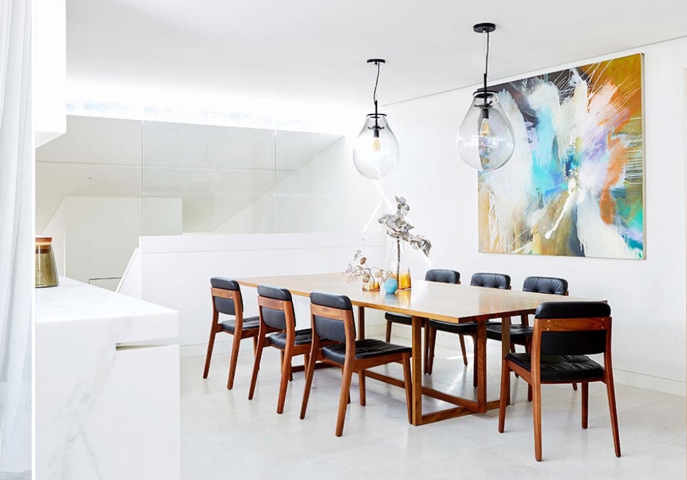 Newly completed residential project in Woollahra. The client brief was to have some strong moments of colour throughout the house, amplifying the abundance of natural light to heighten the space. Clean lines provide balanced relief to the geometric shapes that dominate the architecture and within these few objects add a little drama to the Interior.