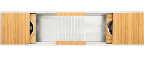 Each Galley Workstation is handcrafted in the USA, fabricated from one piece of 316L 16-gauge stainless steel, so you know it can withstand the rigours of life in a hectic kitchen. You can choose from four Culinary Kit finishes: Exclusive Gray Resin, Designer White Resin, Natural Golden Bamboo, and Graphite Wood Composite. A unique Angel Finish was developed to soften the traditional high-sheen appearance of stainless steel. This surface resists water spots and obscures minor grazes. If you do scratch the bottom of your Galley, the Angel Finish is completely restorable with the assistance of a trained professional.