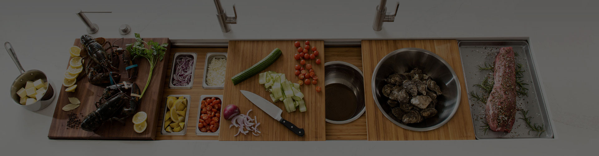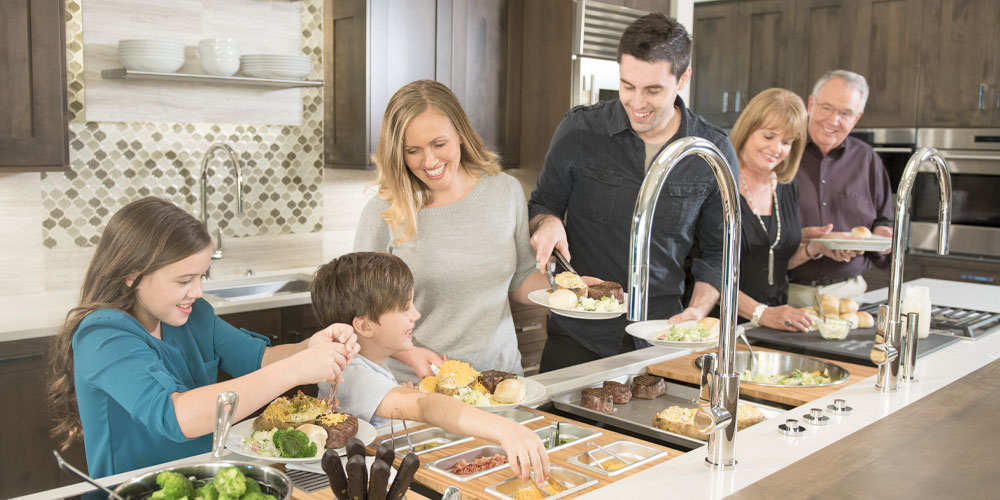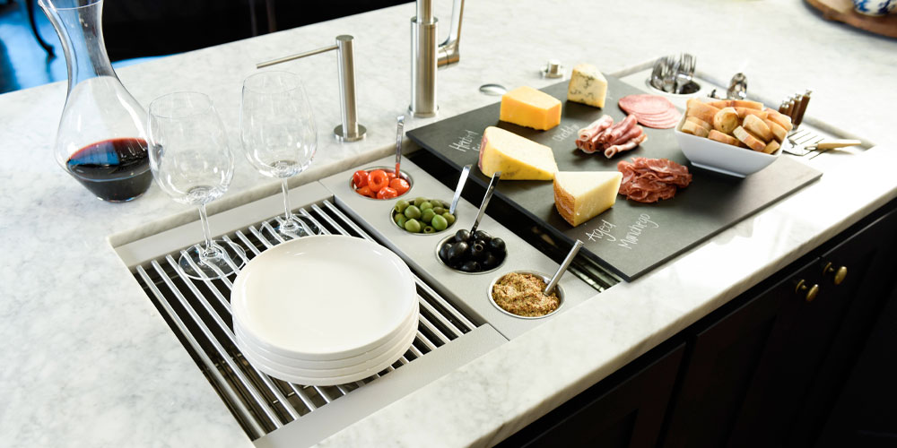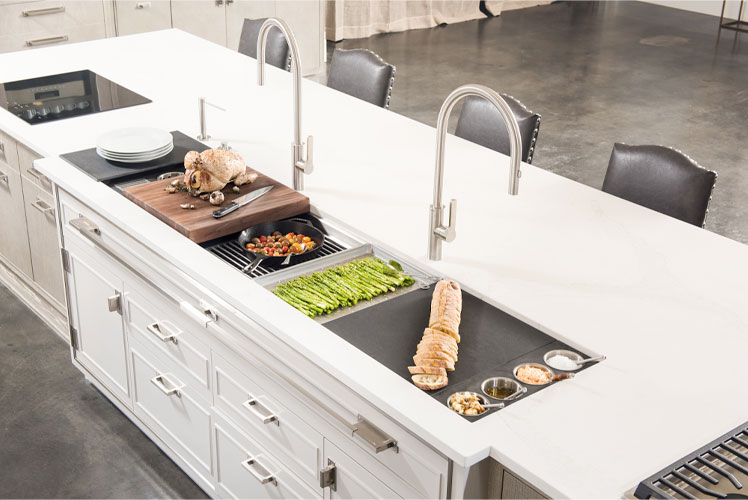 The Galley represents a whole new category of kitchen appliance—a complete culinary system where one can prepare, cook, serve, entertain, and clean all in one central and convenient place. The kitchen is even more functional and ergonomic with a cooktop next to the Workstation. This new kitchen work line concept is much more efficient than the traditional work triangle. Kitchens that feature a Galley Workstation invite more rewarding interaction. Conversations flow more freely, and every stage of meal preparation is a collaborative act. Many hands make light work, and most problems can be solved by working smarter, not harder.