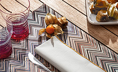 The Missoni Home accessories collection brings Italian style to every surface and setting. From vibrant placemats and tactile table runners to sculptural candles infused with fragrance and flair, each piece captures the joyful spirit of Missoni. With a rich palette of colours and signature patterns, these accessories are designed to be layered and to spark conversation, elevating the everyday into something artfully considered.
