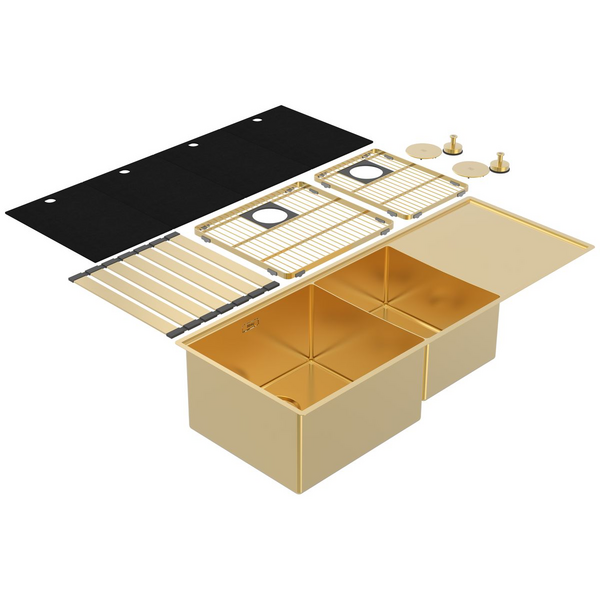 Abey Boutique Lugano Double Bowl Sink & Drainer Left - Eureka Gold STQ450DLG