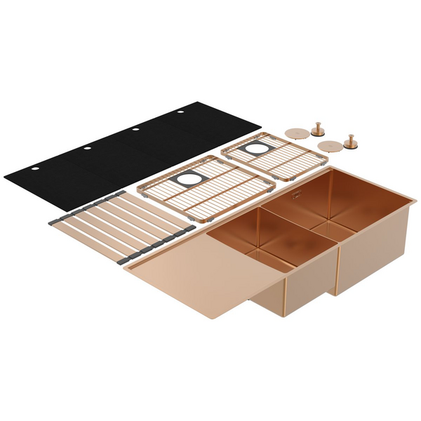 Abey Boutique Lugano Double Bowl Sink & Drainer Right - Artisan Copper STQ450DRCO