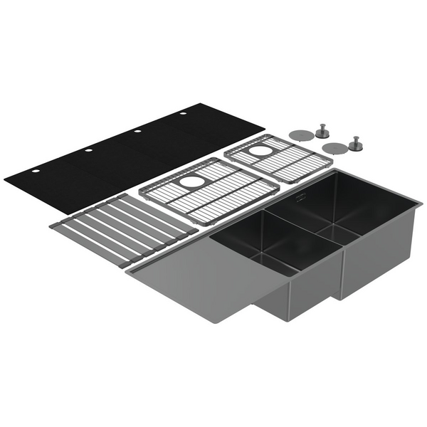 Abey Boutique Lugano Double Bowl Sink & Drainer Right - Black Pearl STQ450DRB