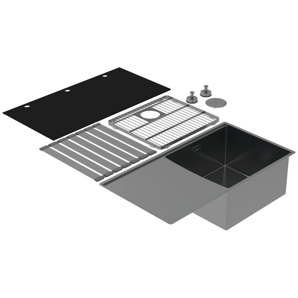 Abey Boutique Lugano Single Bowl Sink & Drainer Left - Black Pearl STQ450SLB