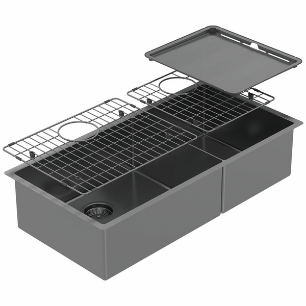 With a large 40-litre bowl and a smaller 20-litre bowl, you can organise your sink space with ease. In addition, the drain tray and drainer grids can be utilised for your convenience. Whether you’re defrosting meat, or soaking cookware with stubborn grease, this flexible and generously-sized double bowl configuration can be adapted to your needs. The minimalist and geometric design will elevate the look of any contemporary kitchen, while the understated black pearl finish adds a sense of sophistication.