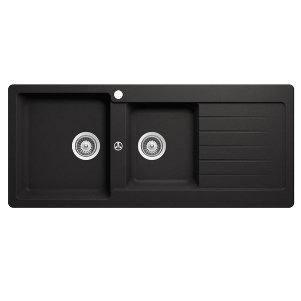 Abey Schock Typos 1 & 3/4 Left Hand Bowl Sink with Drainer - Nero TD200NL