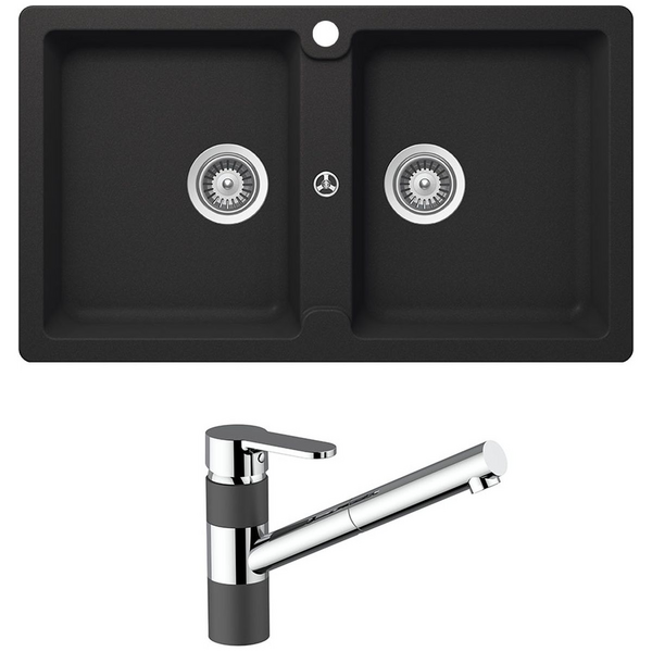 Abey Schock Typos Double Sink & Armando Vicario ISA Kitchen Mixer - Onyx TN200T2B
