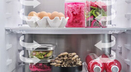 Cooling 360° distributes cold air evenly across all shelves using multiple vents and a stainless-steel rear panel. This reduces temperature fluctuations and helps preserve the taste, texture and appearance of fresh food.
