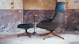 Built for both durability and comfort, the Amura Coach Armchair features a moulded shell crafted from a composite of linen fibres and resin. The base, available with wood inserts and a smooth swivel mechanism, combines stability with effortless movement, ensuring a luxurious and adaptable seating experience.