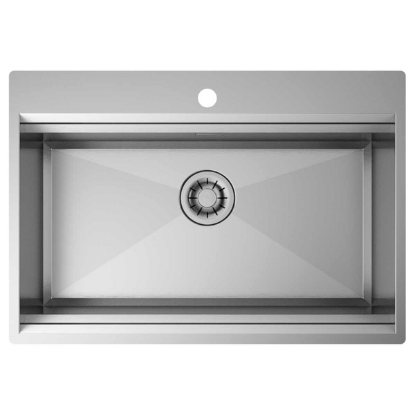 | Features | Sound deadening pads. Laser welded corners. Drainage enhanced bottoms. 70% recycled stainless steel. Dual level workstation. Dedicated accessories. |