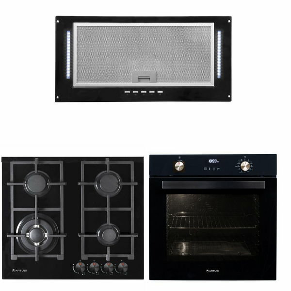 Artusi 60cm Pack Pyrolytic Oven, Gas Cooktop, Rangehood AUM60BPK