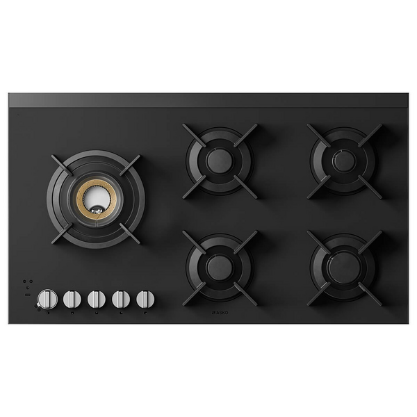 ASKO 90cm Natural Gas 5 Burner Cooktop with Fusion Volcano Burner Matte Black Ceramic Glass HG8954MGD1