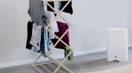 Maximise the process of doing indoor laundry without needing to use a dryer. This dehumidifier removes moisture from the air in cooler climates, so that hanging clothes indoors doesn’t take days to dry.
