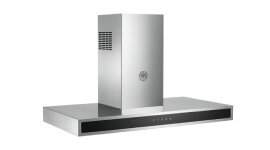 Matches Bertazzoni appliances for a modern, cohesive kitchen aesthetic. The Bertazzoni Design Series hood offers a sleek contemporary style with steel-encased glass and touch controls.