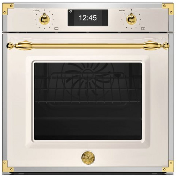 The Total Steam function infuses meals with moisture, preserving nutrients, vitamins, and rich flavours without added fats. The removable water tank is easily accessed behind a discreet push-pull panel, allowing refills without interrupting cooking. Pyrolytic cleaning harnesses high temperatures to eliminate residues, keeping the oven spotless with minimal effort. Elegant finishes in Nero Matt, Avorio/Stainless, and Avorio/Gold complete this refined appliance, combining timeless style with modern performance for discerning home chefs.