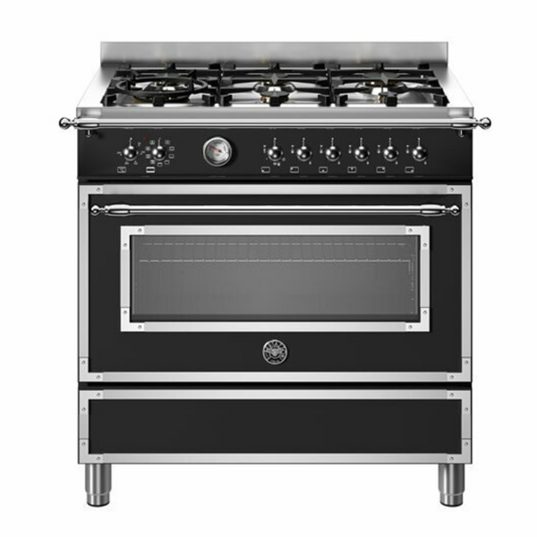 Bertazzoni 90cm Heritage Series Matte Black Dual Fuel Freestanding Oven HER96L1ENET