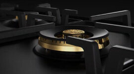 Designed with both aesthetics and functionality in mind, the hob features solid brass burners with matching caps for efficient, even heat distribution. Cast iron pan supports ensure stability for all cookware, while the integrated flame failure device adds an extra layer of safety by automatically shutting off the gas if the flame extinguishes. The ergonomic metal knobs offer precise control and enhance the tactile quality of the hob.