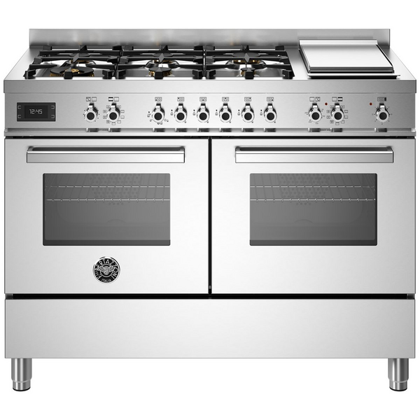 Bertazzoni 120cm Professional Dual Fuel Freestanding Stainless Steel Oven with Griddle Stainless Steel PRO126G2EXT