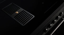 The Professional cooker combines 4 induction zones, including 2 bridging zones that merge into larger cooking areas, offering flexible, even heating for various pan sizes. Ergonomic knob controls and an integrated ventilation system enhance precision, convenience, and kitchen air quality.