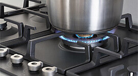 Boils water in under six minutes, thanks to high-efficiency power burners and a cooktop designed for rapid heat delivery.
