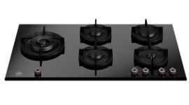 | Features | Design Type: Built Proud into your kitchen benchtop. Finish Style: Black Tempered Glass Finish. Burners: Matt Black monoblock burners. Wok Burner: 18Mj high-speed central dual wok burner, ideal for Asian cooking or for use with large pans. Pan Supports: The single cast iron pan support is both solid and secure for safe use. Control Knobs: Black metal knobs with a titanium look. Cooking Zones: |