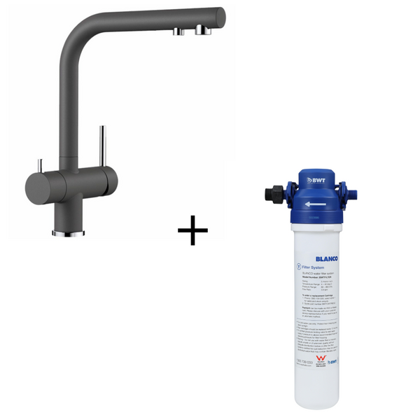 | Features | Package Deal: Dual Lever Anthracite Tap and Separate Underbench Water Filter. Tap Styling: European Styling and Engineering. Ceramic Disk Cartridge: Durable & Long lasting Ceramic Dick technology. 2 Levers: Separate Lever for Filtered Water. 3 In-1 Tap: 3 in-1 mixer tap with cold and warm water lever on the right side, filtered water lever on the left side. High Arch and 360° Swivel: The high arched neck and 360° swivel will allow you to clean dishes and fill pots and vases with ease. |
