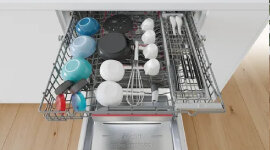 Located at the top of your dishwasher, the Extra Space 3rd Basket makes space for large and small utensils, flat bowls, measuring cups and more. It’s fitted with a movable knife tray, which increases the loading capacity of the basket below. More loading flexibility for your small items.