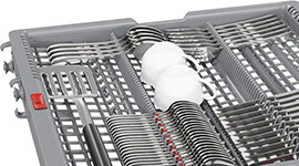 The VarioDrawer Pro provides provides more space and flexibilitty with a third level drawer. Lowerable side components is ideal for small items, while cutlery and kitchen utensils can be separated for optimum cleaning and drying results. Foldable racks ensure wide-handled knives can easily be accommodated.